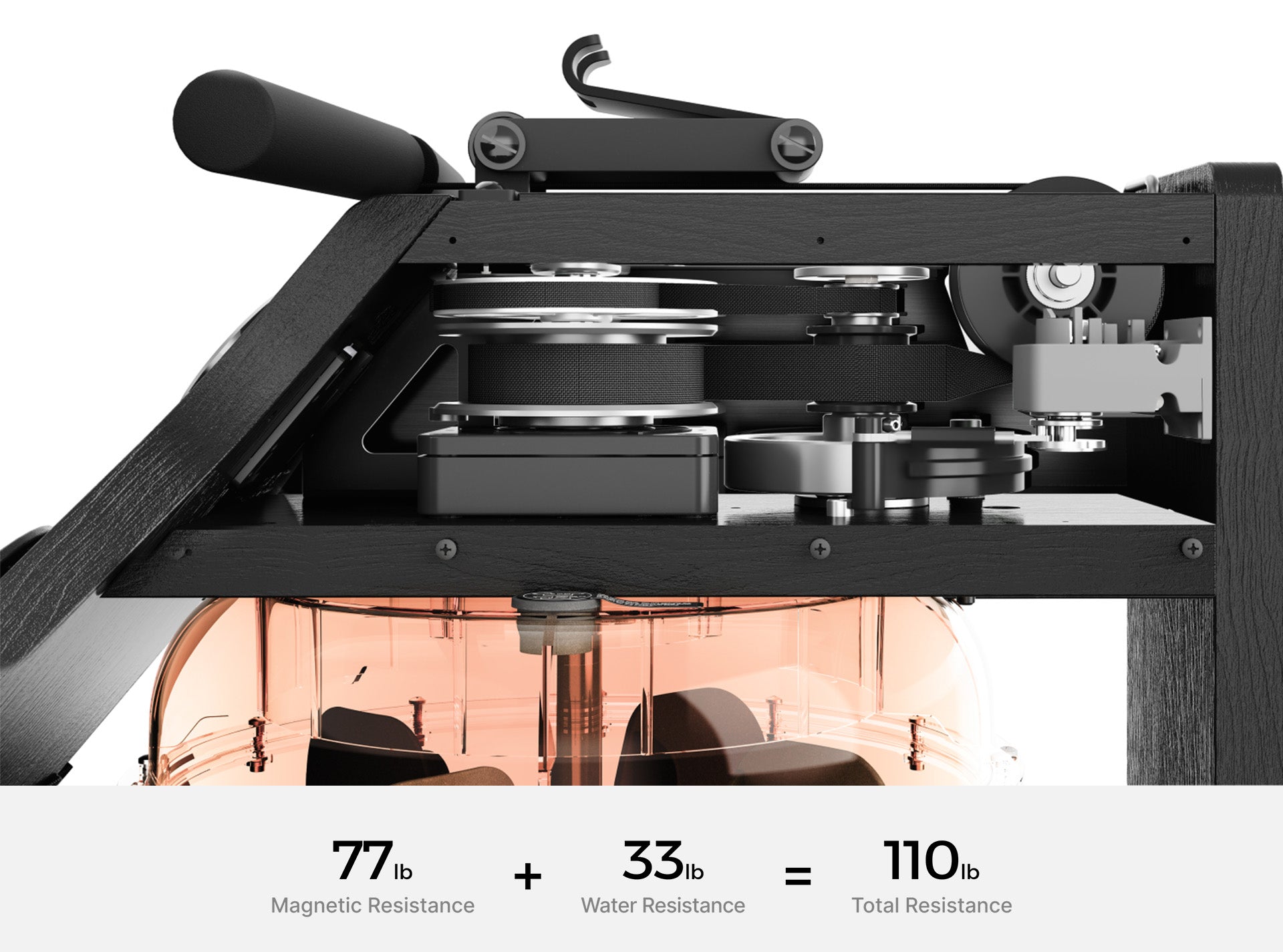 - Dual Resistance System: Experience a realistic rowing sensation with the combination of natural water resistance and 32 adjustable levels of magnetic resistance for a customized workout.