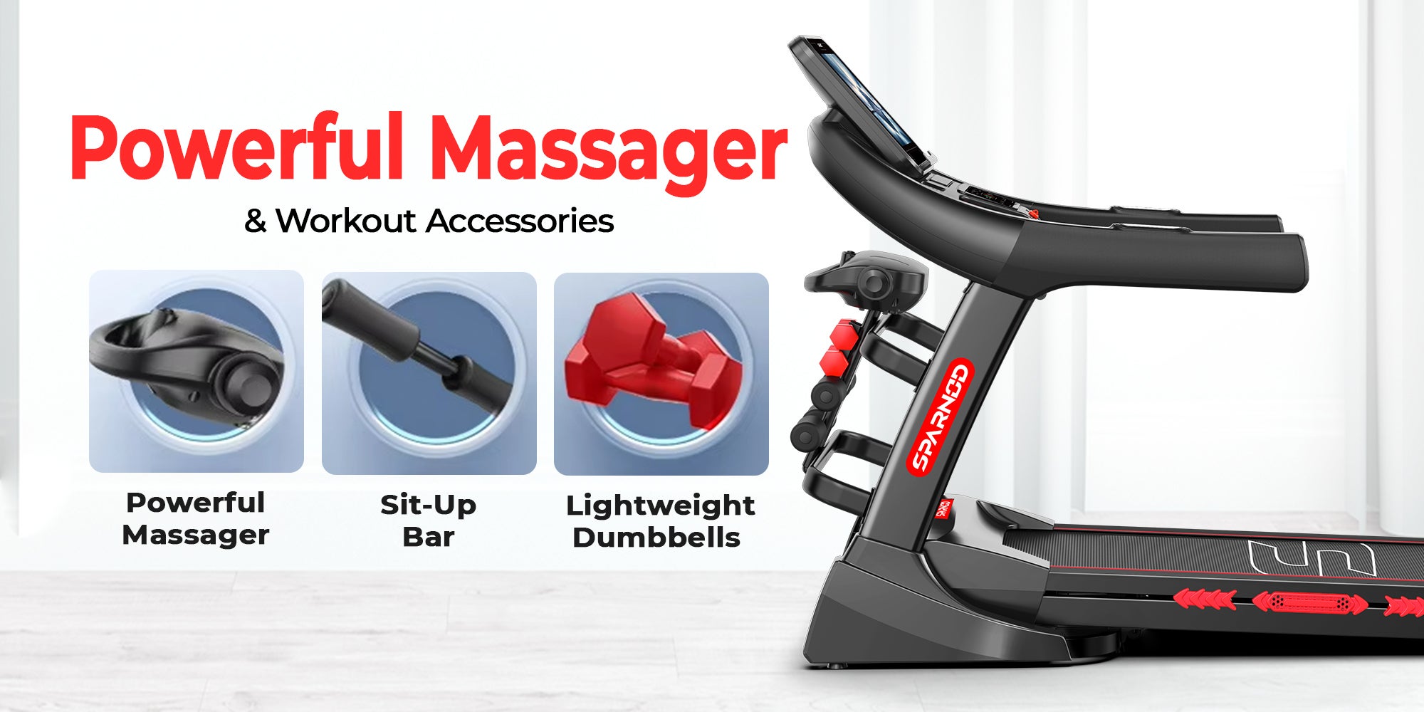 Multi-Function Workout Station – Includes massager, sit-up bar, and 1 pair of dumbbells, enhancing full-body training and muscle recovery.