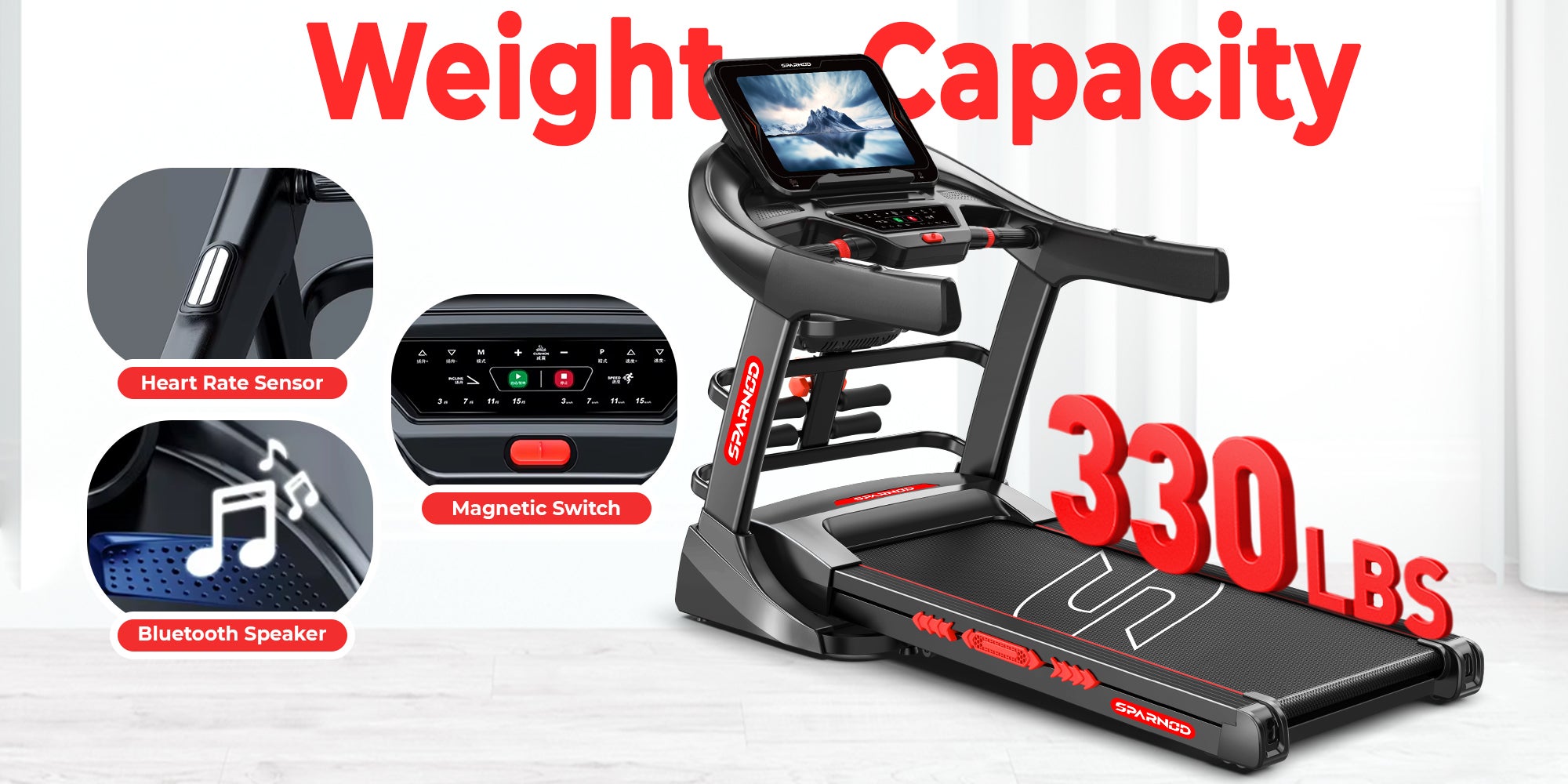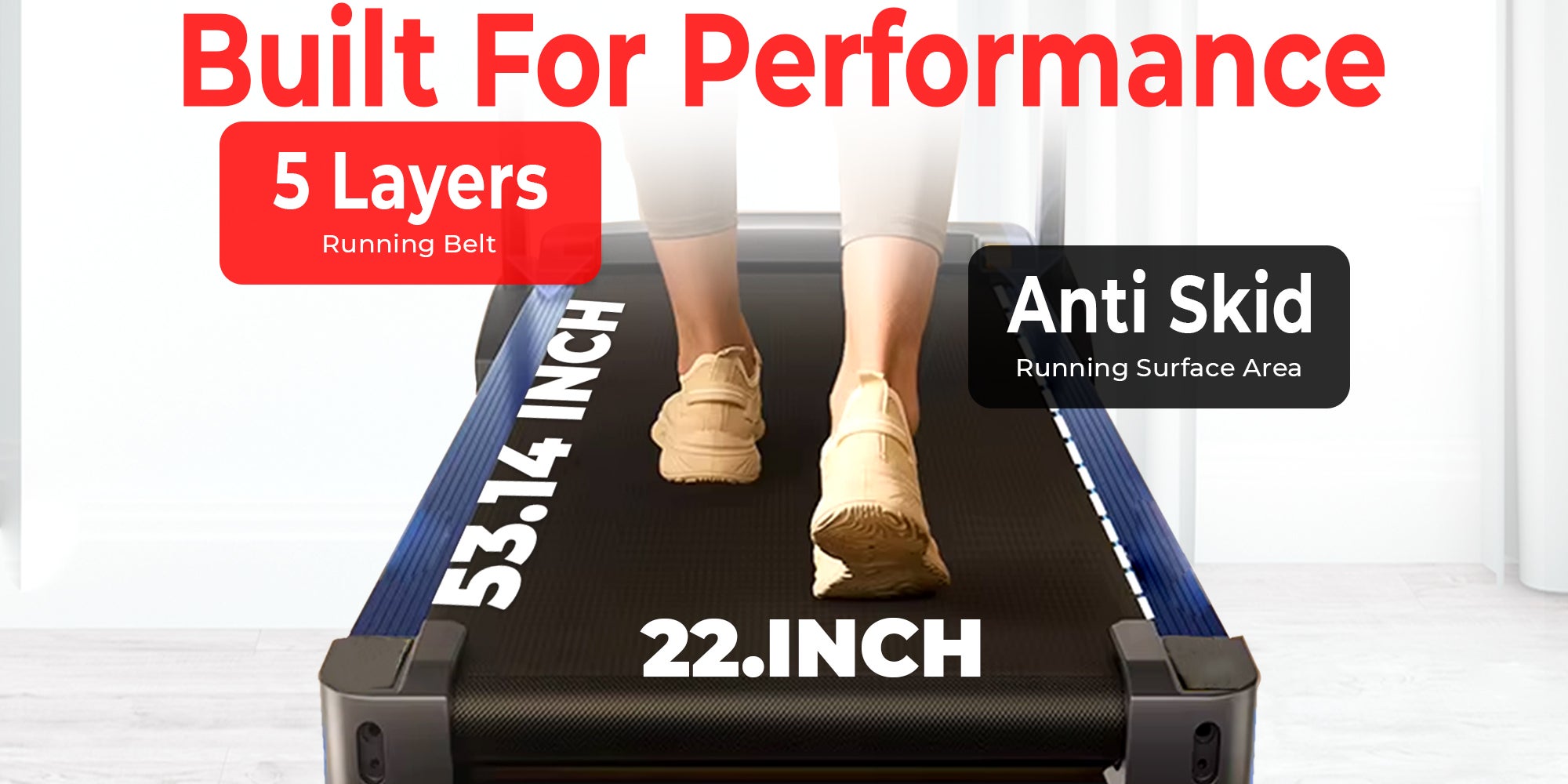 Spacious Running Surface – Wide 560x1350mm anti-skid running belt with 18mm thick deck offers stability and safety for all fitness levels.