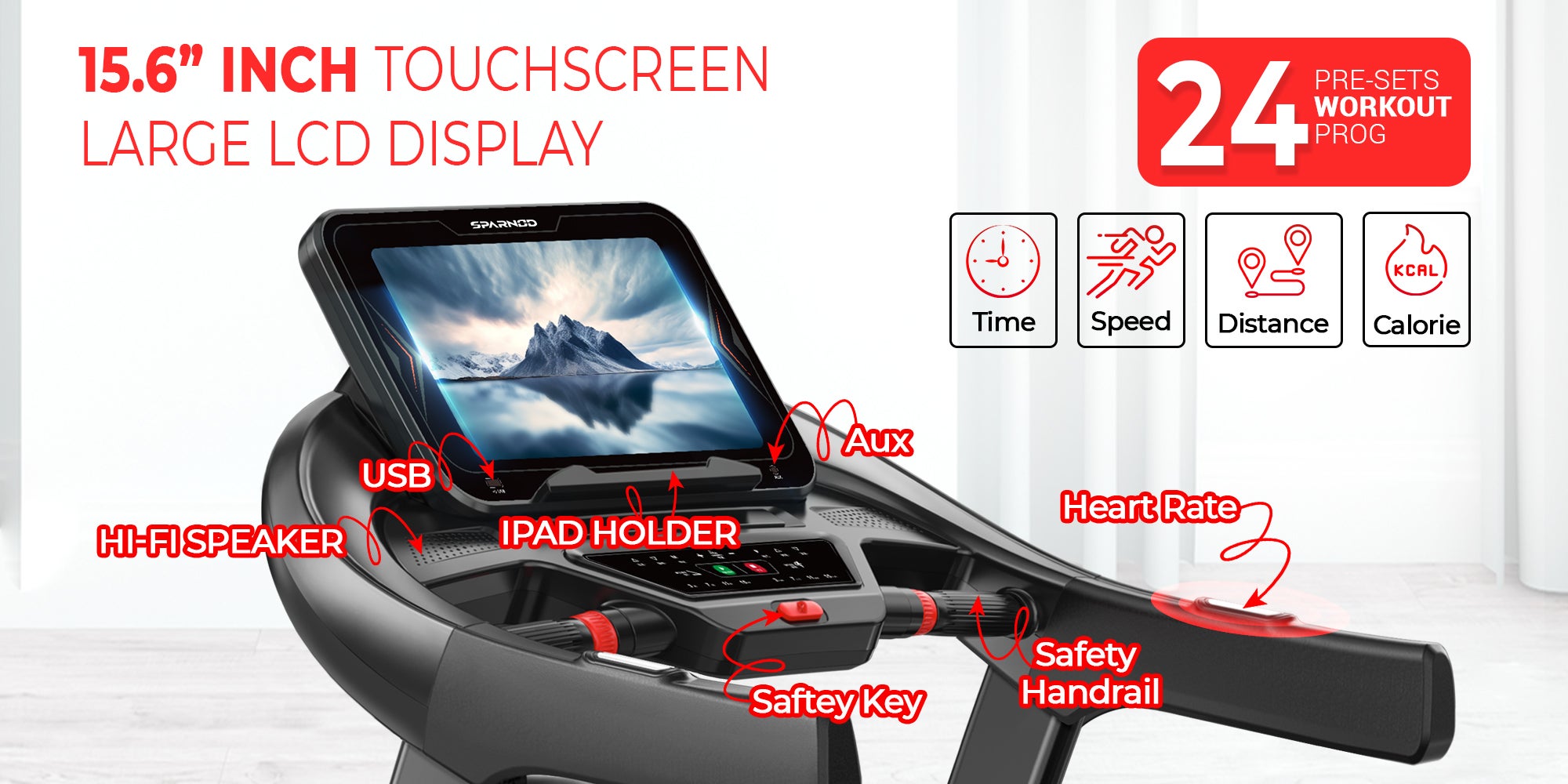 Item Display Type & Screen size | 15.6' Touching Screen Time, Distance, Speed, Calories, Pulse |