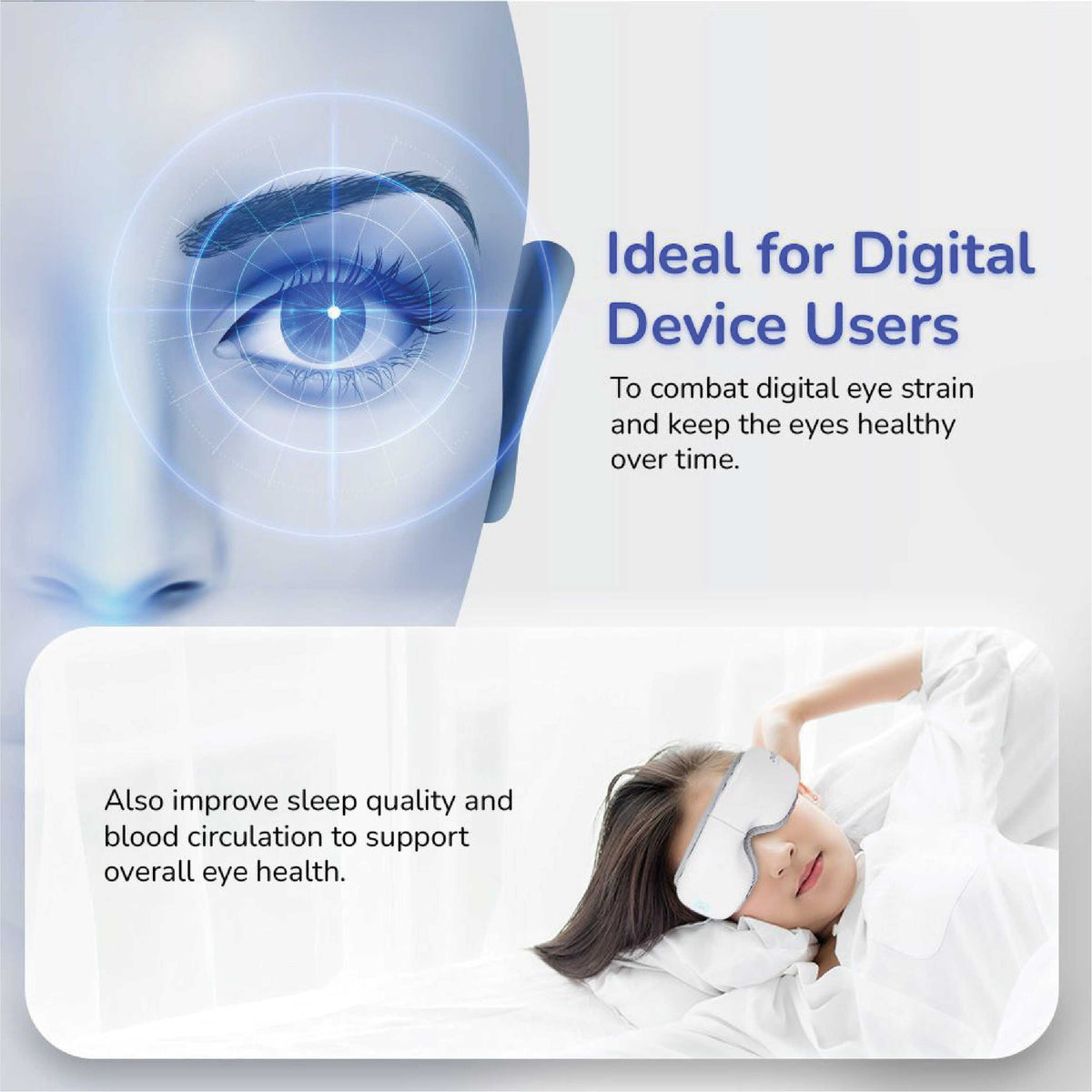 Alleviates headaches: I-Vizz can help relieve tension headaches and migraines by relaxing the muscles around the eyes and promoting better blood flow.